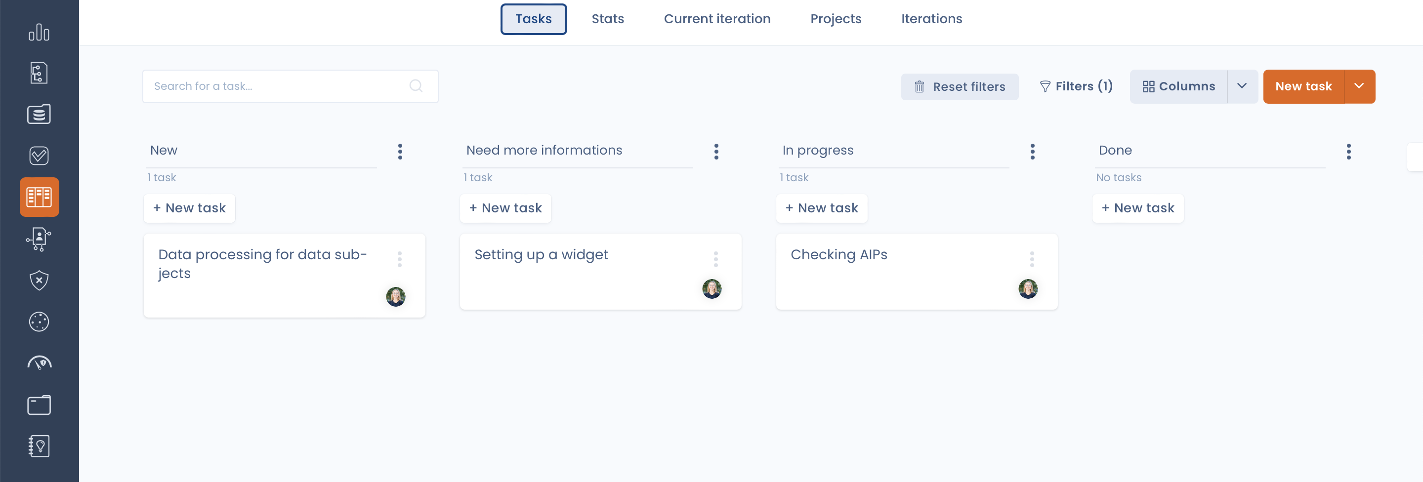 Once you have identified the actions required to complete your compliance project, you create the associated tasks and allocate them to the associated collaborators directly in the "Planning" tab of the Dastra tool: