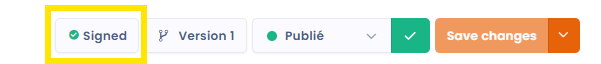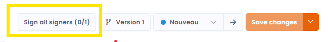 Once you have added at least one signatory to your contract ([see signers](https://doc.dastra.eu/en/features/contrats/les-signataires)), you can manage the signing process of your contract. It's important to note that you must save your contract in order to proceed with signing. Any pending modifications that have not been saved will lock the sign button.