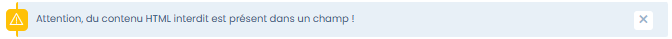 ## Message d'erreur : "Attention, du contenu HTML interdit est présent dans un champ !"