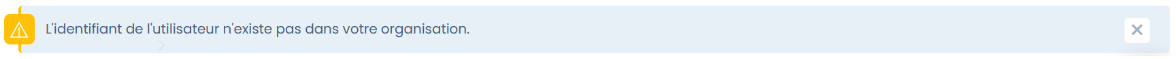 <figure><img src="https://1301193153-files.gitbook.io/~/files/v0/b/gitbook-x-prod.appspot.com/o/spaces%2F-LvBxs22wUMicv9uWp6C-2584506019%2Fuploads%2Fg9FIm1TgwFEXF5vDkEGV%2FCapture%20d&#x27;%C3%A9cran%202025-05-15%20102250.png?alt=media&#x26;token=7b3a9747-5d8a-4ea8-8ae6-5d74b46c17af" alt=""><figcaption><p>L'identifiant de l'utilisateur n'existe pas dans votre organisation.</p></figcaption></figure>