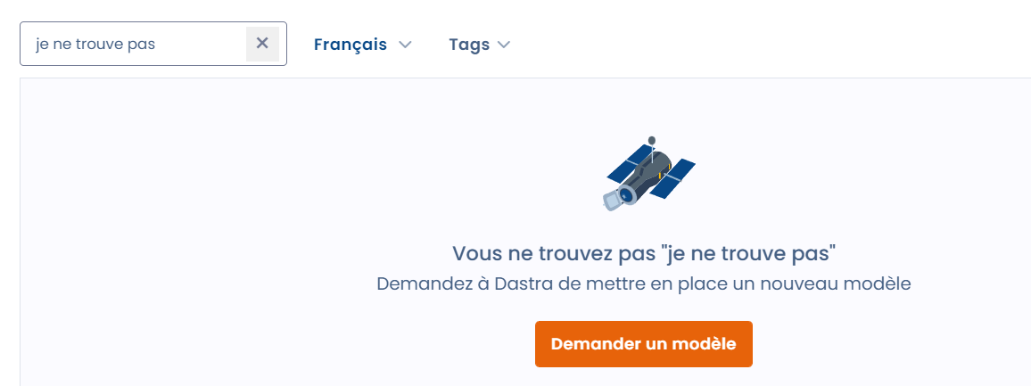Si vous ne trouvez pas un modèle, vous pouvez nous en suggérer la création.&#x20;