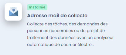 <figure><img src="https://1301193153-files.gitbook.io/~/files/v0/b/gitbook-x-prod.appspot.com/o/spaces%2F-LvBxs22wUMicv9uWp6C-2584506019%2Fuploads%2FDQNWJ6Fa9H2rsY6yVmw2%2Fimage.png?alt=media&#x26;token=8ae3ef29-9ebc-4e55-93f4-307b090af0f6" alt=""><figcaption><p>L'intégration "Adresse mail de collecte" dans Dastra.</p></figcaption></figure>