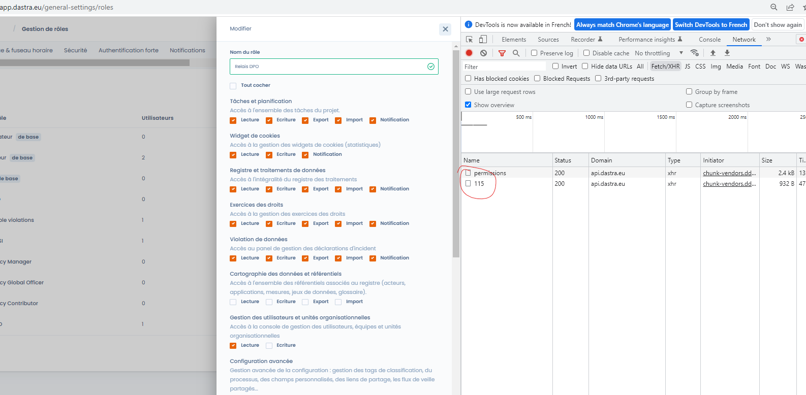 Voor aangepaste rollen die u hebt gemaakt, is de identifier zichtbaar in de ontwikkelconsole van uw browser via de netwerktab