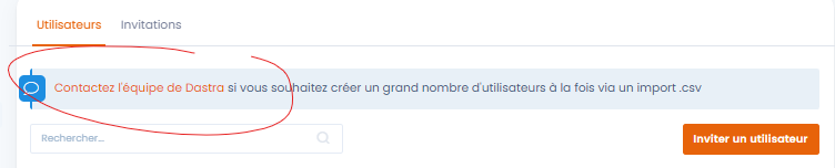 Je kunt het importeren van een grote lijst gebruikers in het platform aanvragen. Om dit te doen moet je de Dastra teams