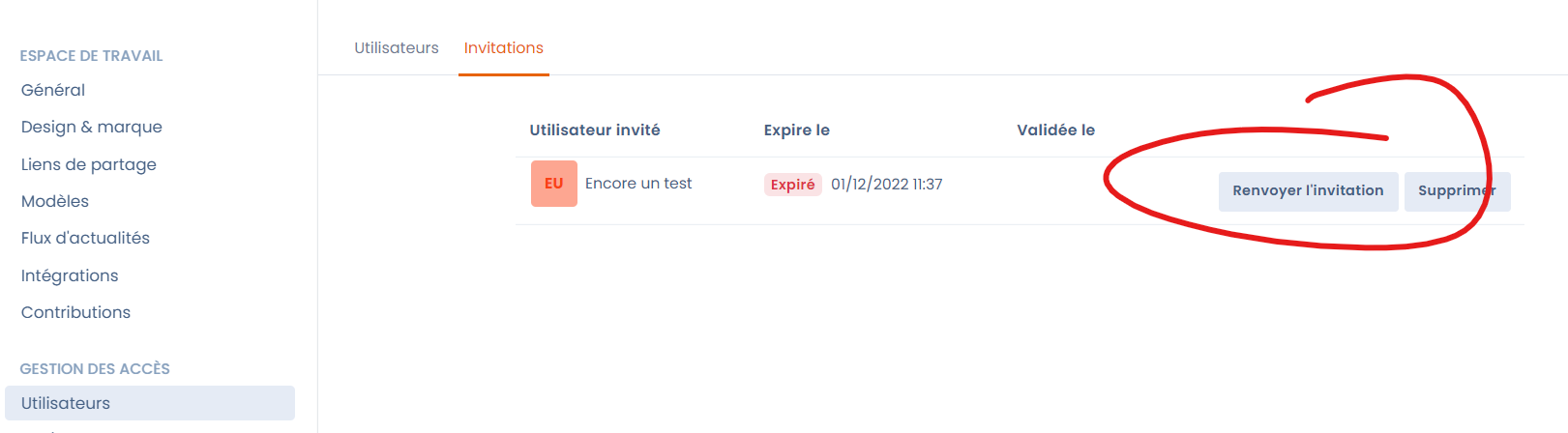 Je kunt de huidige uitnodigingen controleren in de werkruimte-instellingen in de sectie "Gebruikers".