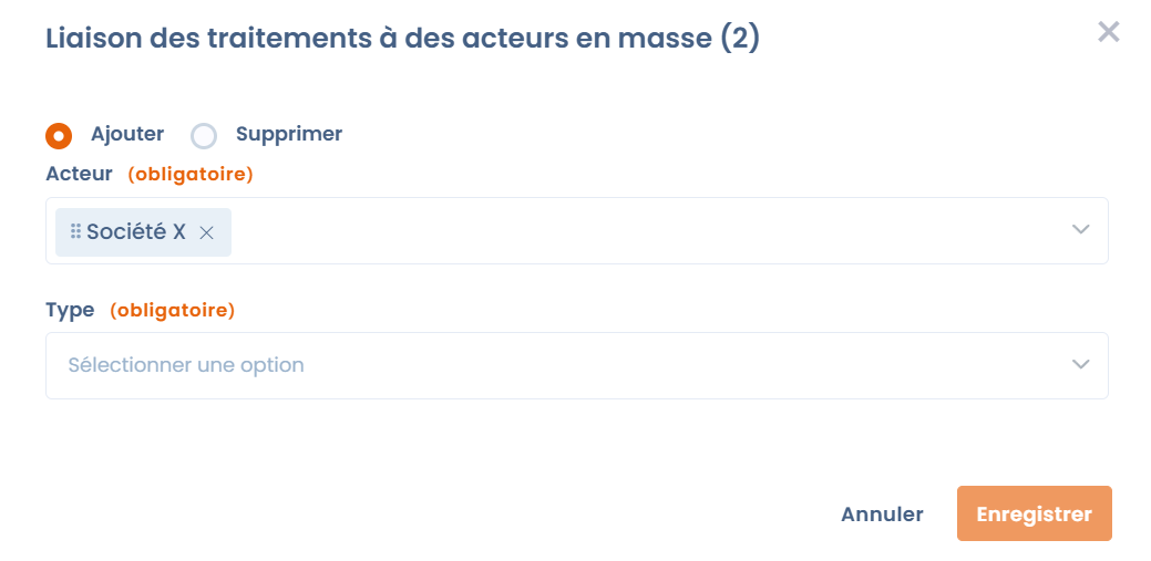 Selecteer de optie "Koppel actoren" en voeg je actoren toe als belanghebbenden.