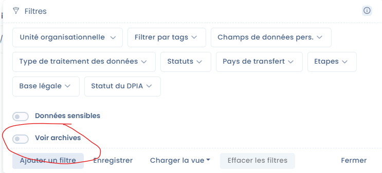 Om een Verwerking te verwijderen, moet je de Verwerking eerst archiveren met de archiefknop en vervolgens de archieven weergeven met behulp van de filters om de Verwerking definitief te verwijderen. Dit is een beveiliging tegen overhaaste verwijderingen.