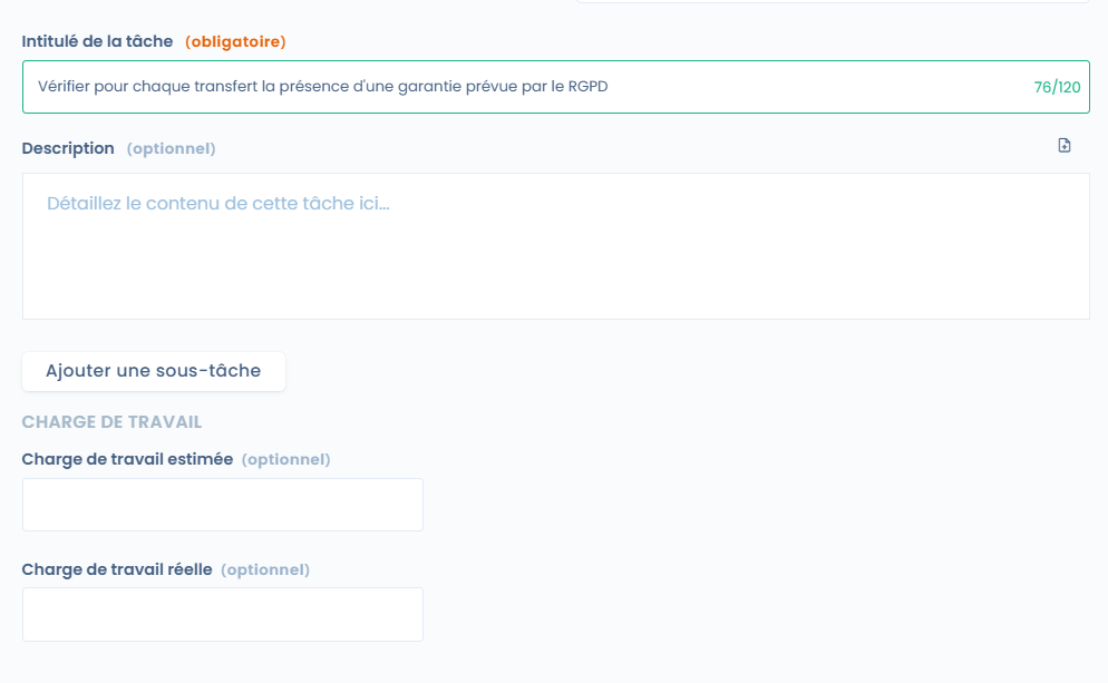 ## Geef de werkbelasting van de taak op