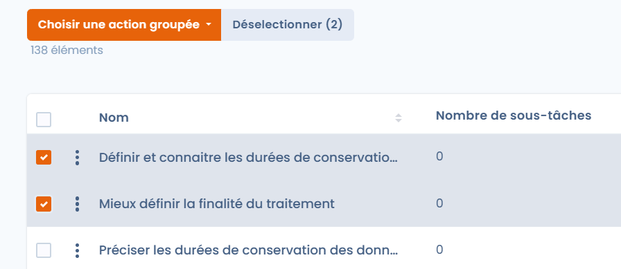 Begin met het selecteren van de taken die je aan een project wilt koppelen.