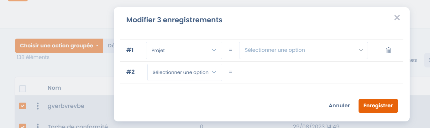 Om meerdere taken in één actie aan een project te koppelen, moet je gegroepeerde acties gebruiken en velden wijzigen.